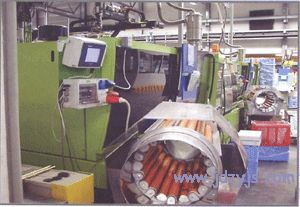 整個過程開始于把顆粒狀的塑料材料通過抖動喂料器傳送到具有螺旋柱面筒的澆鑄模具中注塑機 在筒中通過摩擦和加熱使得原材料具有可用性,并在受到巨大的壓力下被壓入模具內部。按照過程的復雜性,從所給的材料量中可以獲取1—16個塑料器件。等模具打開后注口就轉向分揀桶,生產工序重新開始。注口是分類的,成品會被傳送到部件容器中。